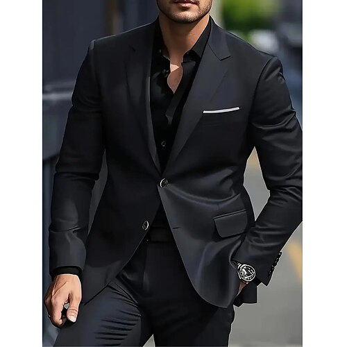 Uomo Matrimonio Feste Abiti da lavoro Bavero classico Nero Blu scuro Formale Tinta unita Vestibilità su misura 2 pezzi Monopetto Due Bottoni
