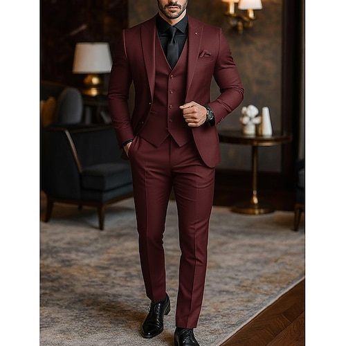 Uomo Casuale Semi-Formale Abiti da lavoro Bavero a lancia Nero Borgogna Quotidiano Affari Tinta unita Vestibilità su misura 3 pezzi Monopetto Due Bottoni