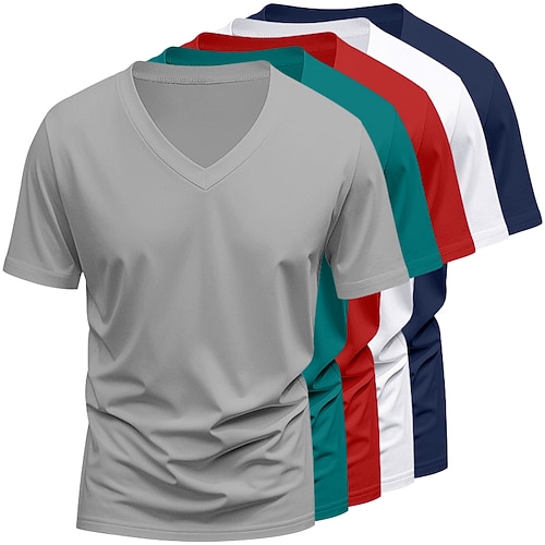 Maglietta da uomo a maniche corte, 5 pezzi, con scollo a V, estiva, per tutte le stagioni, tinta unita, basic, casual, confezione multipla da 5 pezzi, per le vacanze, da strada, casual, bianca, per