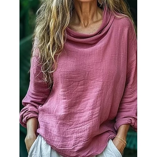 Per donna Blusa Tinta unica Quotidiano Casual Manica Lunga Scollo a Cascata Top Regolari Quotidiano Drappeggiato Nero Rosa Blu Fucsia Grigio Estate Primavera