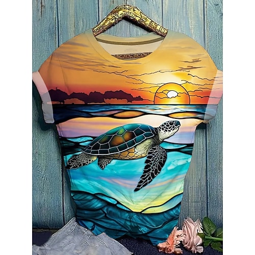 Per donna Maglietta Grafico Animale Tartaruga di mare Vintage Elegante Classico Manica Corta Girocollo Top Regolari Quotidiano Weekend Stampato Blu Arancione Estate Primavera