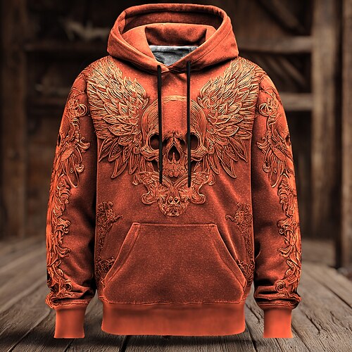 Per uomo Teschio 3D Felpa Punk Esagerato Gotico Casual Manica Lunga Girocollo Con Cappuccio Club Abbigliamento casual alla moda Nero Blu Viola Arancione Coulisse Con cappuccio Autunno Inverno