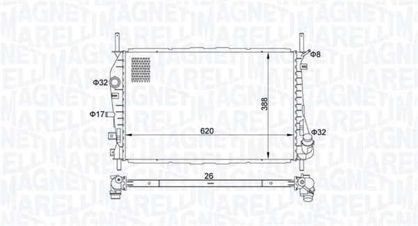 MAGNETI MARELLI Kühler, Motorkühlung 350213185300 für VAG 1H0121253D 1H0121253Q 1H0121253H
