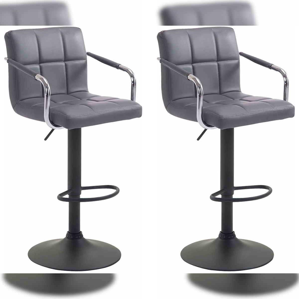 DELUKE 2er Set Barhocker MINOR - Kunstleder Grau 54x46x91 cm Schwarz | Barstuhl Höhenverstellbar Mit Lehne Drehbar Tresenhocker Tresenstuhl Kneipenhocker