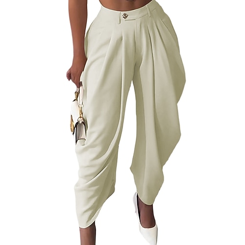 Per donna Chinos Pantaloni Palazzo Vacanza Streetwear Casual Lunghezza alla caviglia Vita media Semplice Patchwork Confortevole Micro-elastico Quotidiano All'aperto Vacanza Bianco latte Aalbicocca