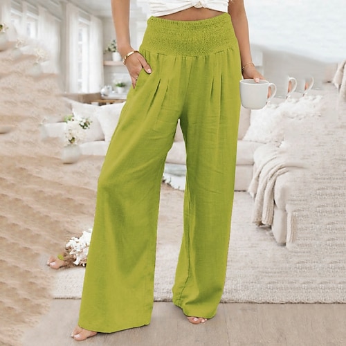Per donna Pantaloni in cotone e lino Gamba larga Chinos Streetwear Casual Lunghezza intera Vita media Semplice Tasca Fascia Elastica Confortevole Micro-elastico Quotidiano All'aperto Streetwear