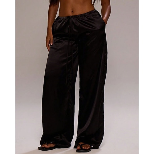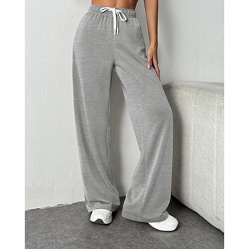 Per donna Gamba larga Chinos Vacanza Streetwear Casual Lunghezza intera Vita media Semplice Design con Coulisse Elastica Confortevole Micro-elastico All'aperto Vacanza Quotidiano Grigio scuro Bianco