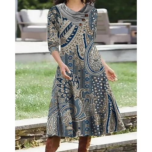 Per donna Abito Midi Vestito Casual Abito Stampato Moda Moderno Quotidiano All'aperto Vacanza Vestibilità regolare Floreale Astratto Manica Lunga Scollo a V Grigio Autunno Inverno