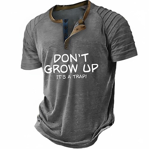 Per uomo Gergo divertente Maglia Henley T-shirt Raglan Manica Corta Moda Designer Casual All'aperto Vacanza Casuale Estate Tutte le stagioni Nero Blu Grigio Cachi Colletto Henley Henley Maglietta