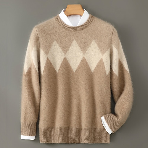 Per uomo Felpa Maglione di lana Maglione Maglione a maglia A Coste Maglia Top Regolari Lavorato a maglia Rombi Girocollo Vintage Moda Casuale Abbigliamento quotidiano Abbigliamento Autunno Inverno