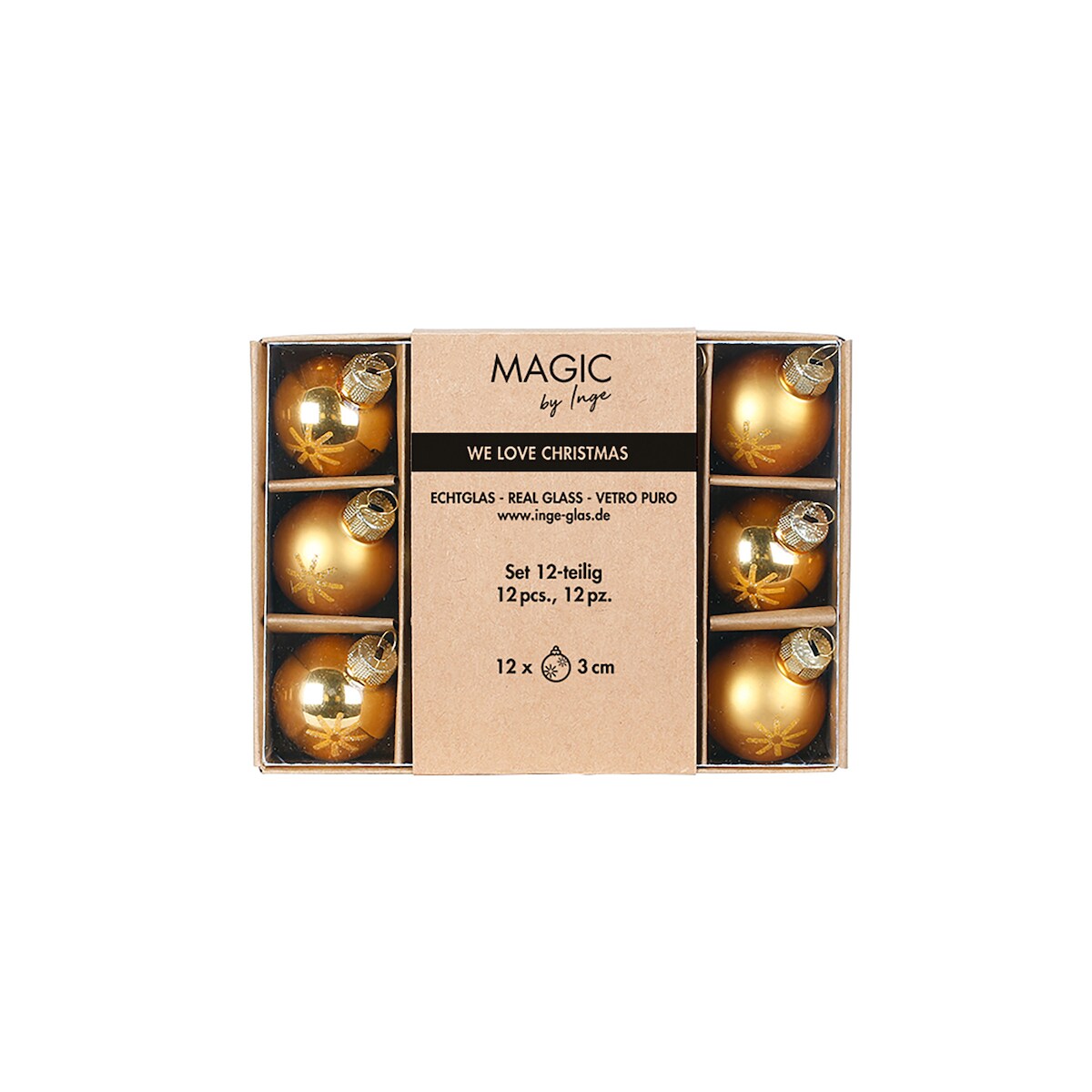12 Weihnachtskugeln Glas 3cm Glitzer Schneeflocken Motiv Christbaumkugeln Weihnachtsbaumkugeln Christbaumschmuck Weihnachtsbaumschmuck Gold