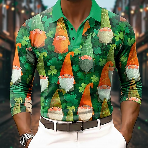 Giorno di San Patrizio Per uomo Trifoglio folletto Polo Manica Lunga Magliette polo Bavero Casual All'aperto Abbigliamento quotidiano Abito da festa Stampa 3D Bottoni Primavera Autunno Inverno verde