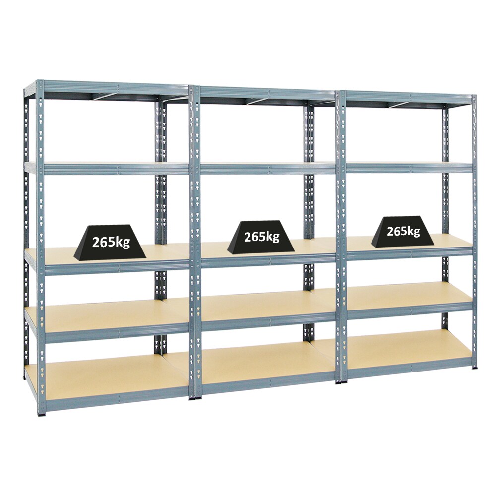 PROREGAL 3x Schwerlastregal Tiger | HxBxT 180x90x60 cm | Fachlast 265kg | Grau | Stecksystem Lagerregal Regalsystem 3 Stk.