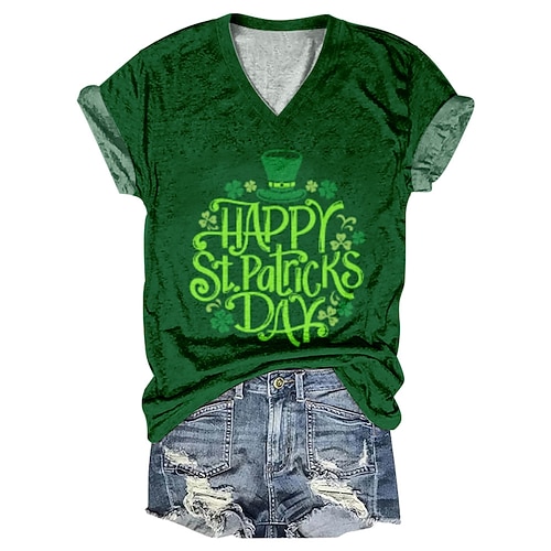 Per donna maglietta Trifoglio Festa di San Patrizio Informale Verde primavera Verde chiaro Verde militare Stampa Manica corta Di tendenza A V Standard Primavera estate