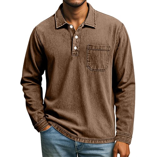 Per uomo Maglia da golf Polo da Golf Lavoro Casuale Bavero Manica Lunga Essenziale Moderno Semplice Tasca Bottoni Primavera Autunno Vestibilità regolare Verde scuro Nero Verde Chiaro Blu scuro Rosa