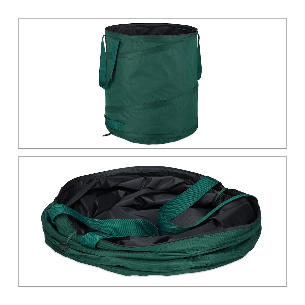 Relaxdays Laubsack selbstaufstellend, 3er Set, 60 L, Pop Up Gartensack mit 3 Griffen, UV-beständig, wasserdicht, grün