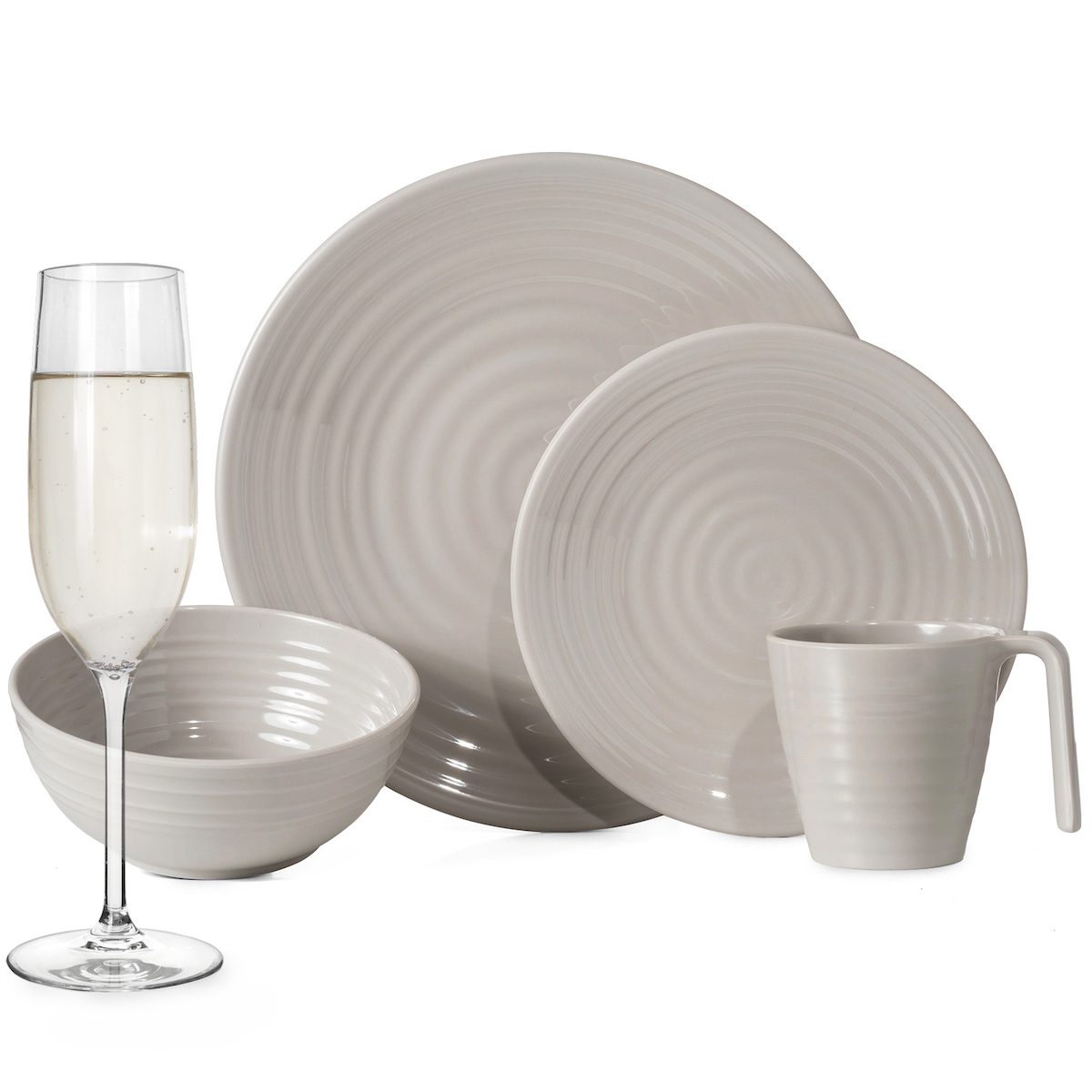 Moritz Melamin Camping Geschirr Set 4 Personen Amboss Design 16 Teilig + 4 Champgner Gläser Flûtes Tafelgeschirr Picknick BBQ Kochgeschirr