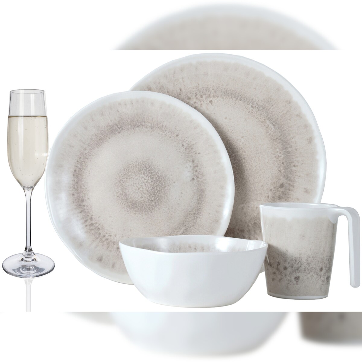 Moritz Melamin Geschirr Set 4 Personen Coffee 16 Teilig + Tiamo Gläser Champagner-Gläser Flûtes Tafelgeschirr Picknick BBQ Kochgeschirr