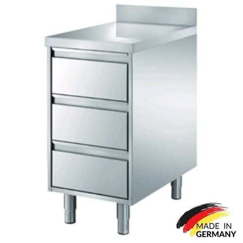 VM Europa Edelstahl Schubladenschrank, 3 Schubladen, mit oder ohne Aufkantung, Premium - alle Größen montiert: 60 x 60 cm / 1 x 3 Schubladen / ohne Aufkantung