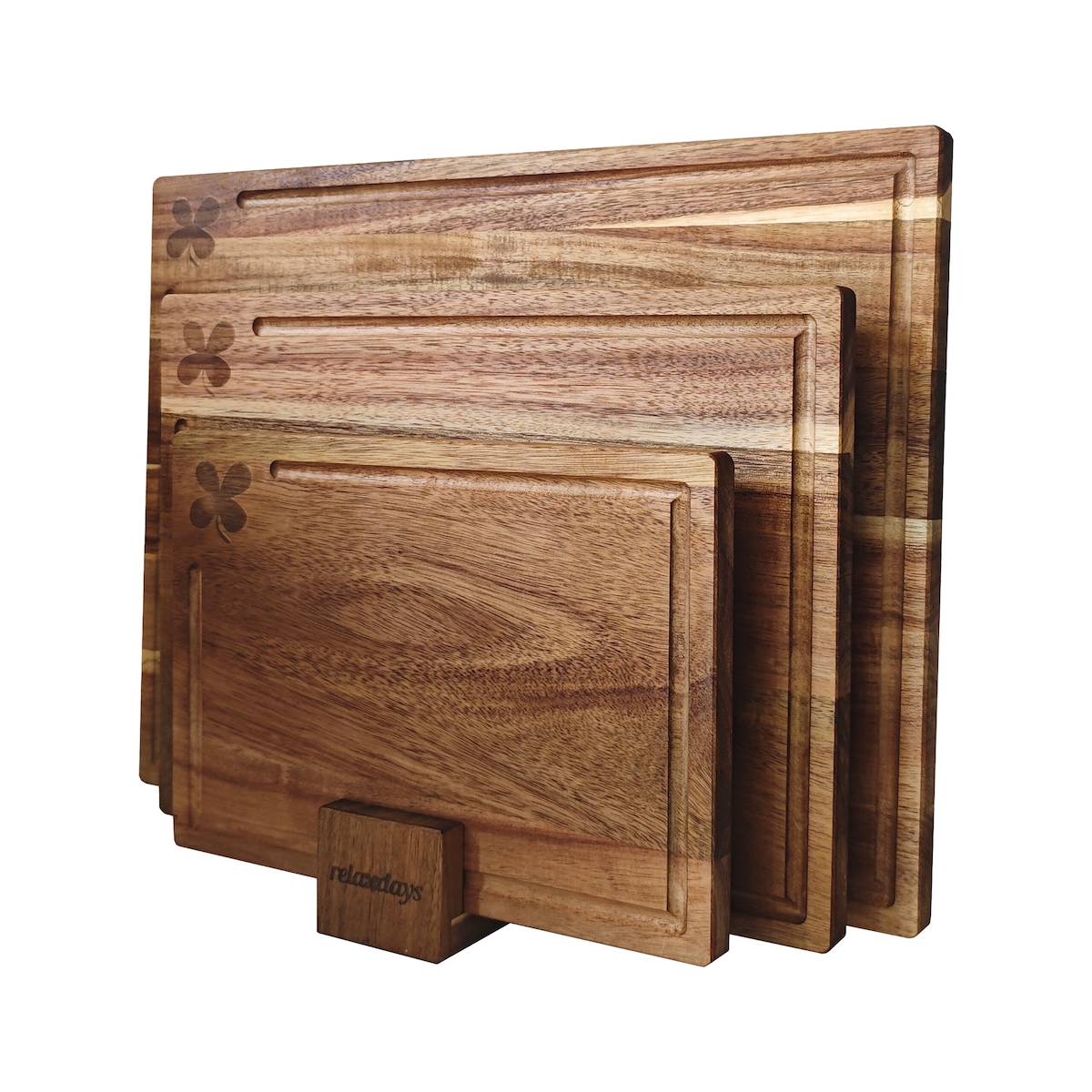 Relaxdays Schneidebrett, Saftrille, 3 Größen, Ständer, hygienisches Akazienholz, Küche, rutschfestes Servierbrett, braun