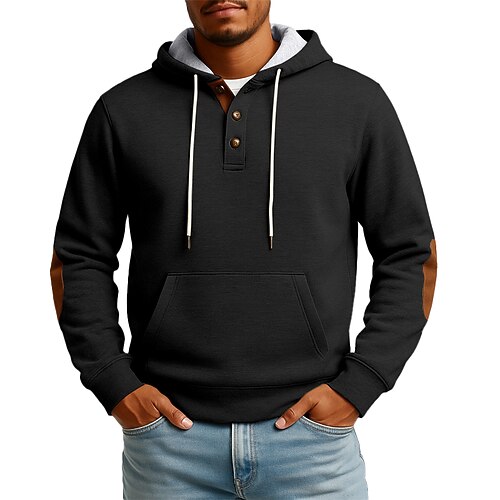 Per uomo Maglia Felpa in pile Felpa con cappuccio abbottonata Nero Verde scuro Cachi Caffè Grigio Henley Semplice Patchwork Tasca a marsupio Sport Outdoor Casuale Quotidiano Streetwear Cool