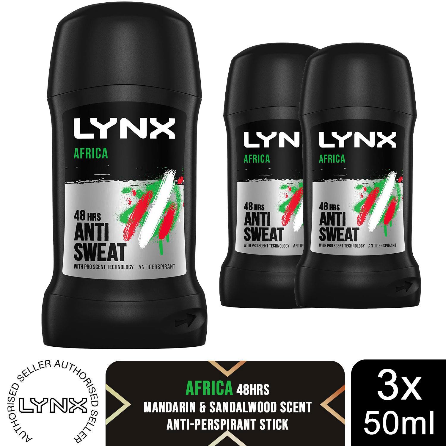 Lynx Mens 3x of Africa Anti-perspirant Deodorant Stick 50ml - Size 50 ml | Lynx Sale | Discount Designer Brands