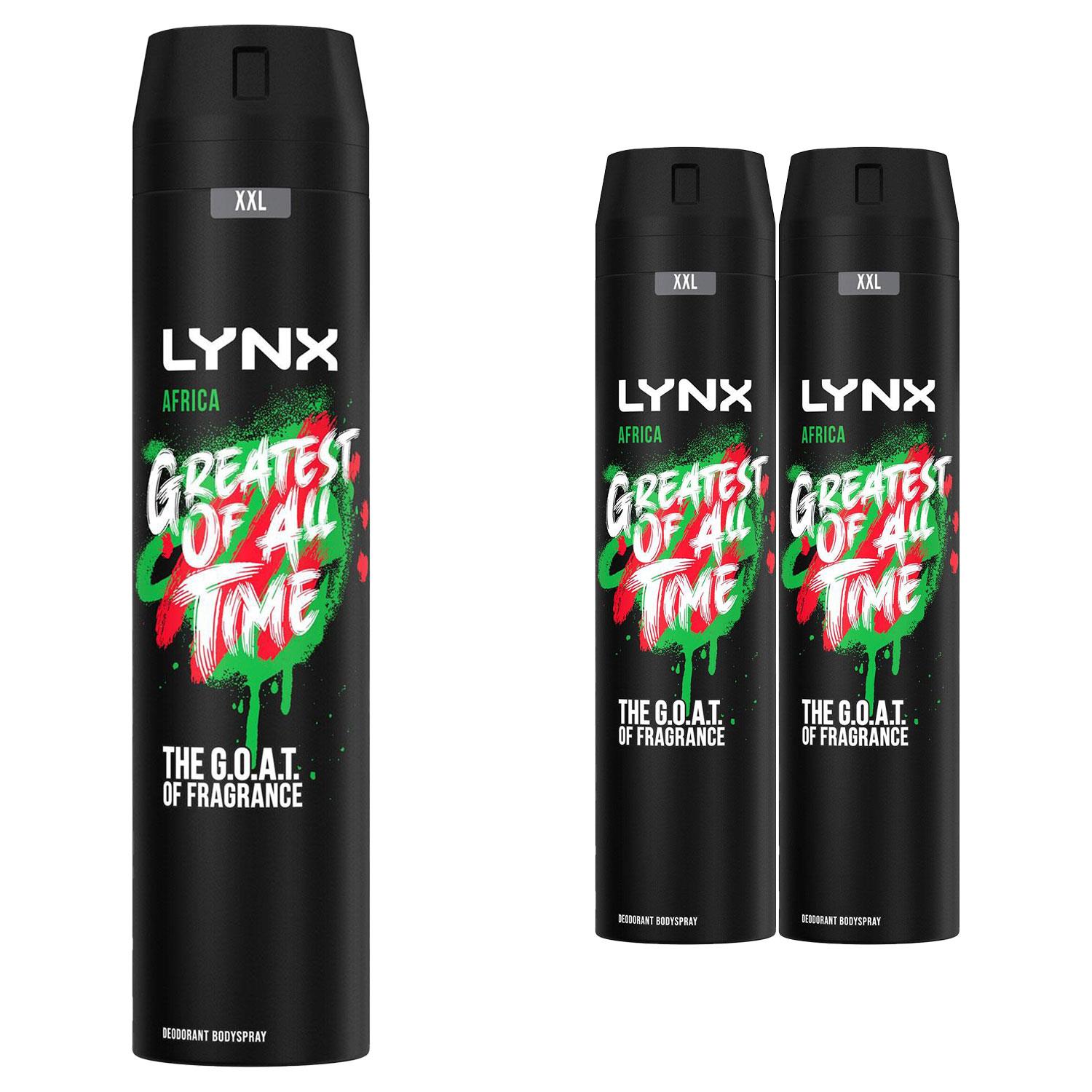 Lynx Mens XXL Deodorant Bodyspray Africa 48H The G.O.A.T. of Fragrance 250ml, 30pk - Size 250 ml | Lynx Sale | Discount Designer Brands