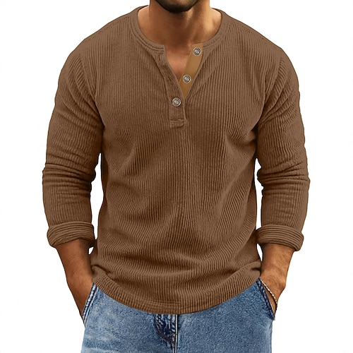 Per uomo Camicia di Velluto a Coste Maglia Henley Maglietta Manica Lunga Tinta unica Semplice Testurizzato Moda Designer Casual Bottoni Caldo Henley Casuale Quotidiano All'aperto Autunno Inverno