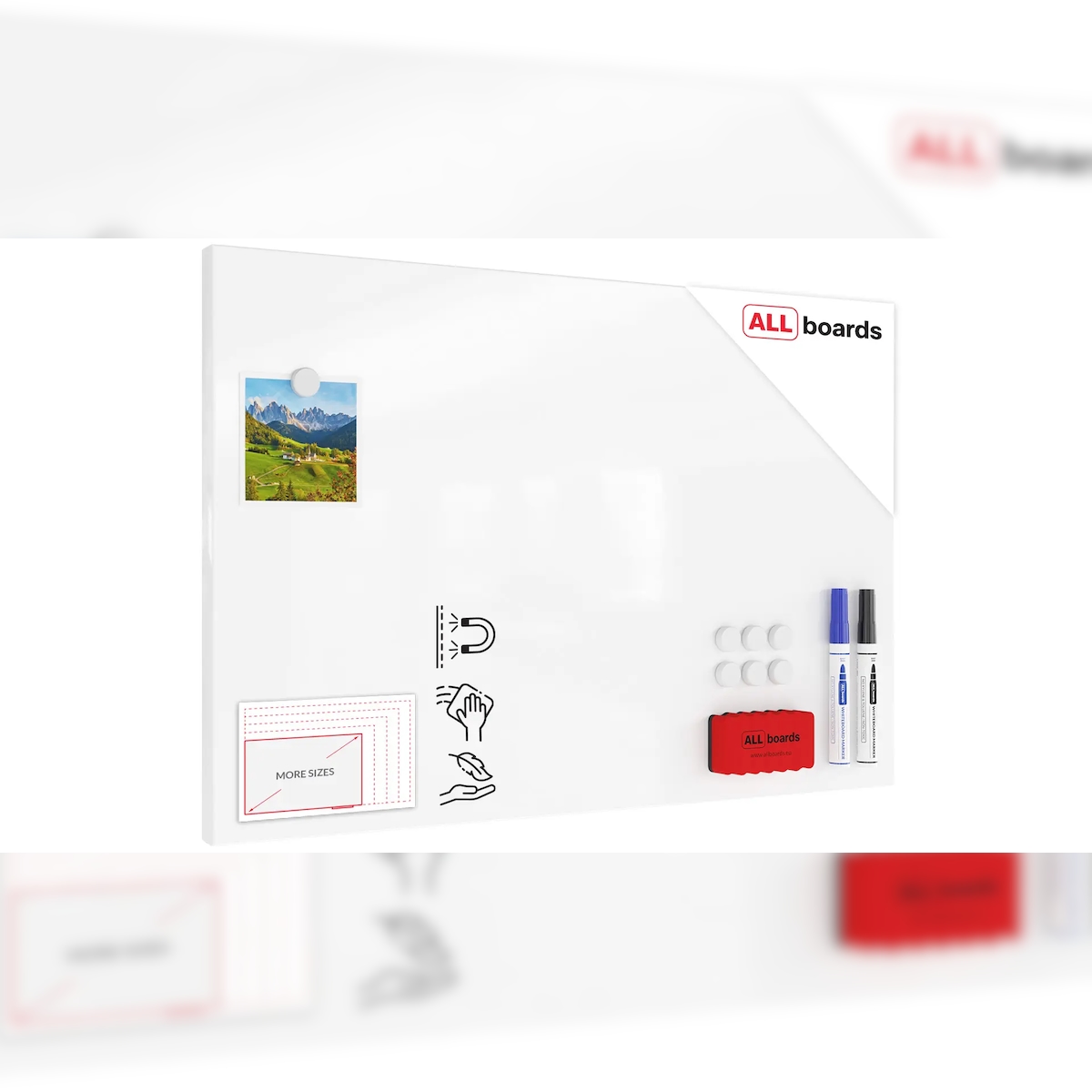 ALLboards Metallische Magnettafel Rahmenlos CLASSIC WHITE 60x40cm Memoboard für jede Art von Magneten + 4 Marker, 10 Magnete und Schwamm