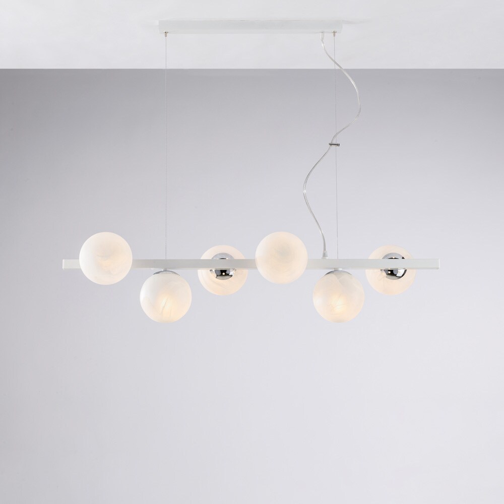 Bonetti Illumina - Adrian - Hängeleuchte aus weiß lackiertem Eisen und Chrom, 6 Lichter, L. 101 x 30 - BL278-6-BCO