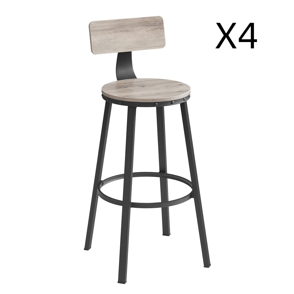 Tabourets de bar lot de 4 avec dossier effet bois grège