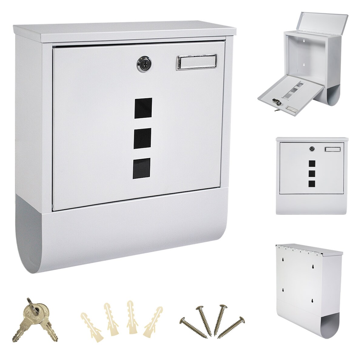 Briefkasten Wandbriefkasten Postkasten inkl. Zeitungsrolle Namensschild weiß B1