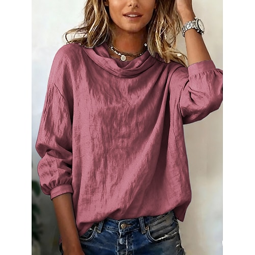 Per donna Blusa Tinta unica Elegante Casual Manica Lunga Collo alto Top Regolari Quotidiano Blu Nero Bianco Rosso Primavera Autunno