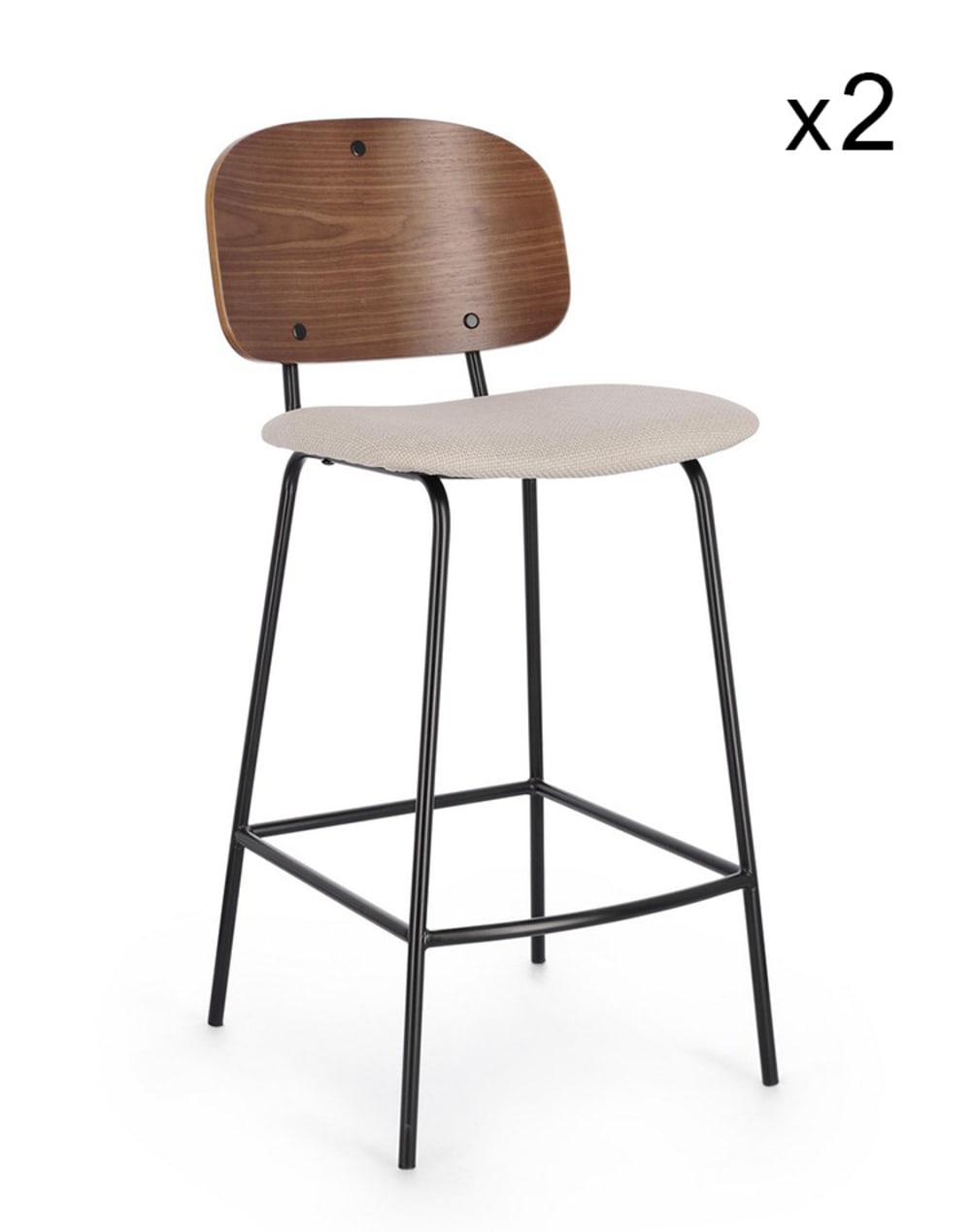 Homifab Lot de 2 tabourets de bar en tissu aigue-marine et effet bois