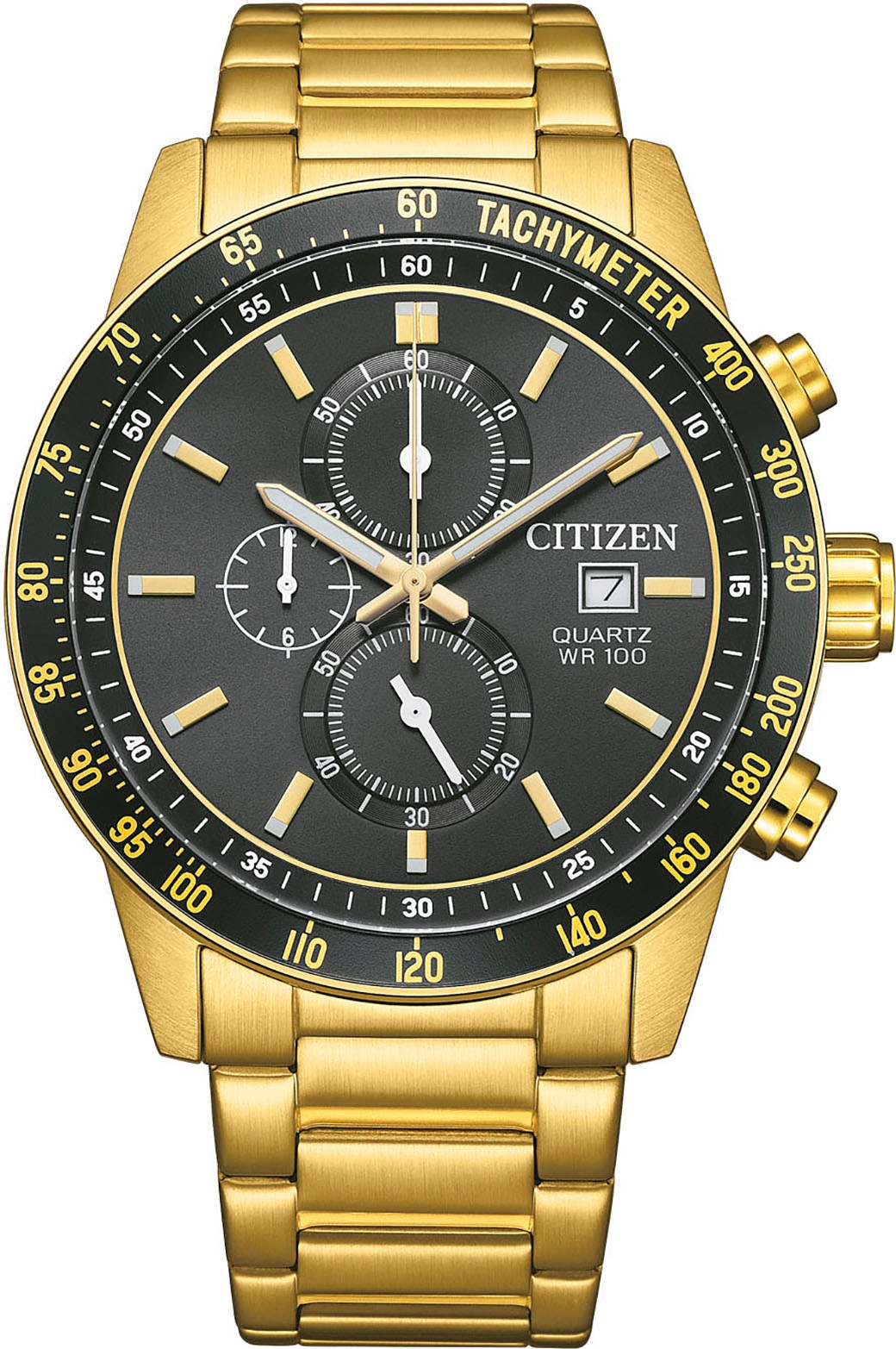 Chronograph CITIZEN, gold (goldfarben), Armbanduhren, Herren, Quarzuhr,Armbanduhr,Herrenuhr, bis 10bar wasserdicht, Edelstahlarmband