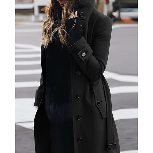 Per donna Cappotto Invernale Cappotto Caldo Confortevole Tasca Bottoni Con cintura Elegante Casual Semplice Vacanza Streetwear Casuale Abbigliamento quotidiano Lungo Collo ripiegato Vestibilit