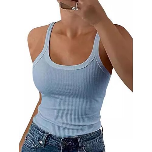 Per donna Top con spalle scoperte Coulisse Tinta unica Semplice Attivo Quotidiano Hawaiano Senza Maniche Senza maniche Girocollo Collo quadrato Collo a U Top Regolari Quotidiano Lavoro Ferie Nero