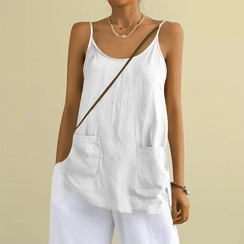 Per donna Canotta Semplice Moda Elegante Classico Senza Maniche Collo a U Top Regolari Quotidiano Weekend Blu Nero Bianco Rosa Beige Estate Primavera