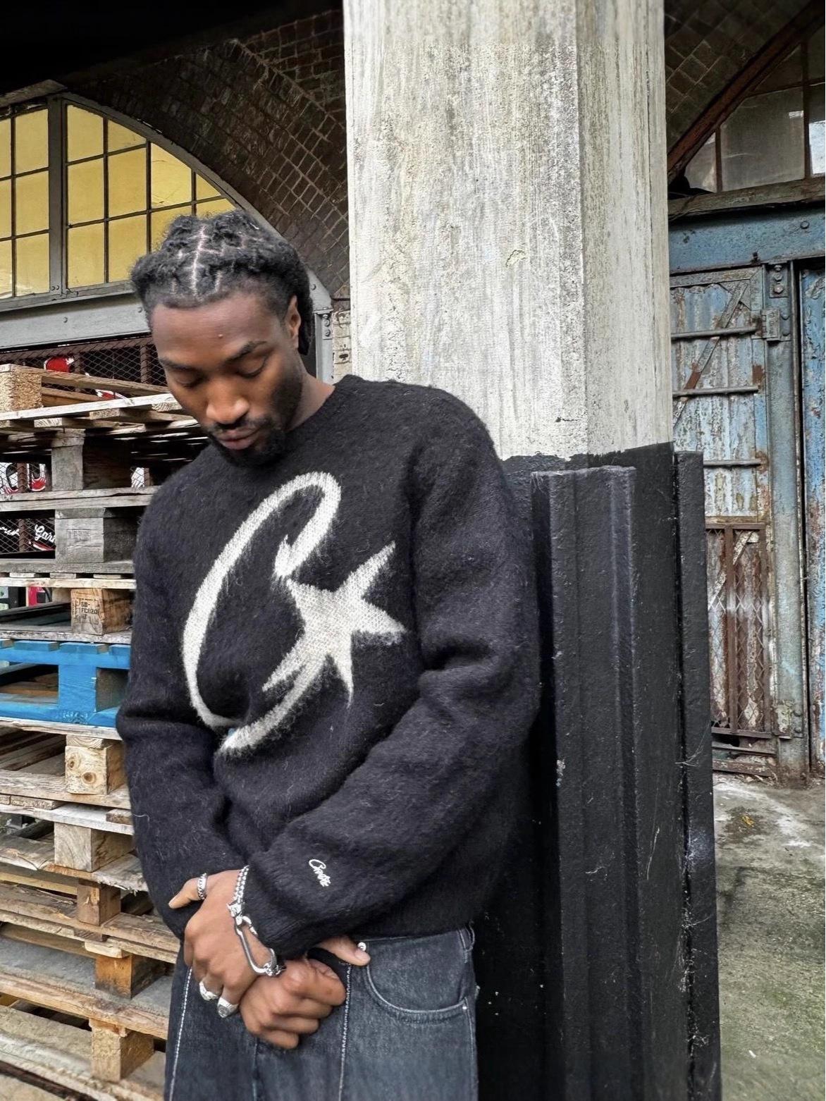 Corteiz Europäischer Streetwear Lockerer Rundhals Strick Pullover Jacke cm