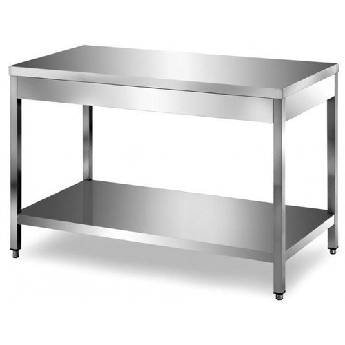 VM Europa Edelstahl Arbeitstisch mit 2 Grundböden Premium - alle Größen zur Selbstmontage oder verschweißt: 140 x 60 cm / ohne Aufkantung / selbstmontage