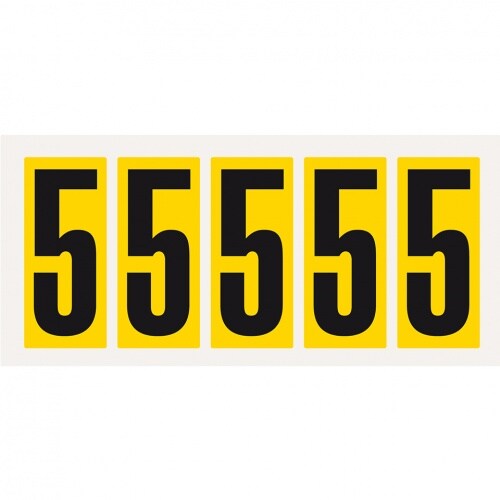 Aufkleber I Ziffer 5, gelb/schwarz, Folie, Schrifthöhe 75mm, 38x88mm, 100 Stück/Packung