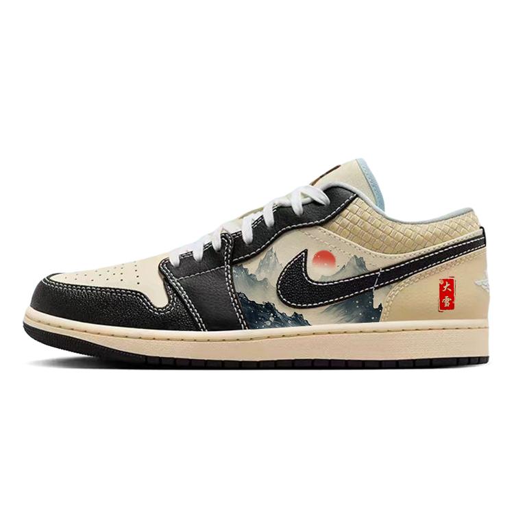 Jordan Air Jordan 1 Rutschfest Abriebfest Niedrig geschnitten Vintage Basketballschuhe Herren Beige Schwarz HQ3437-101(Team181-) cm