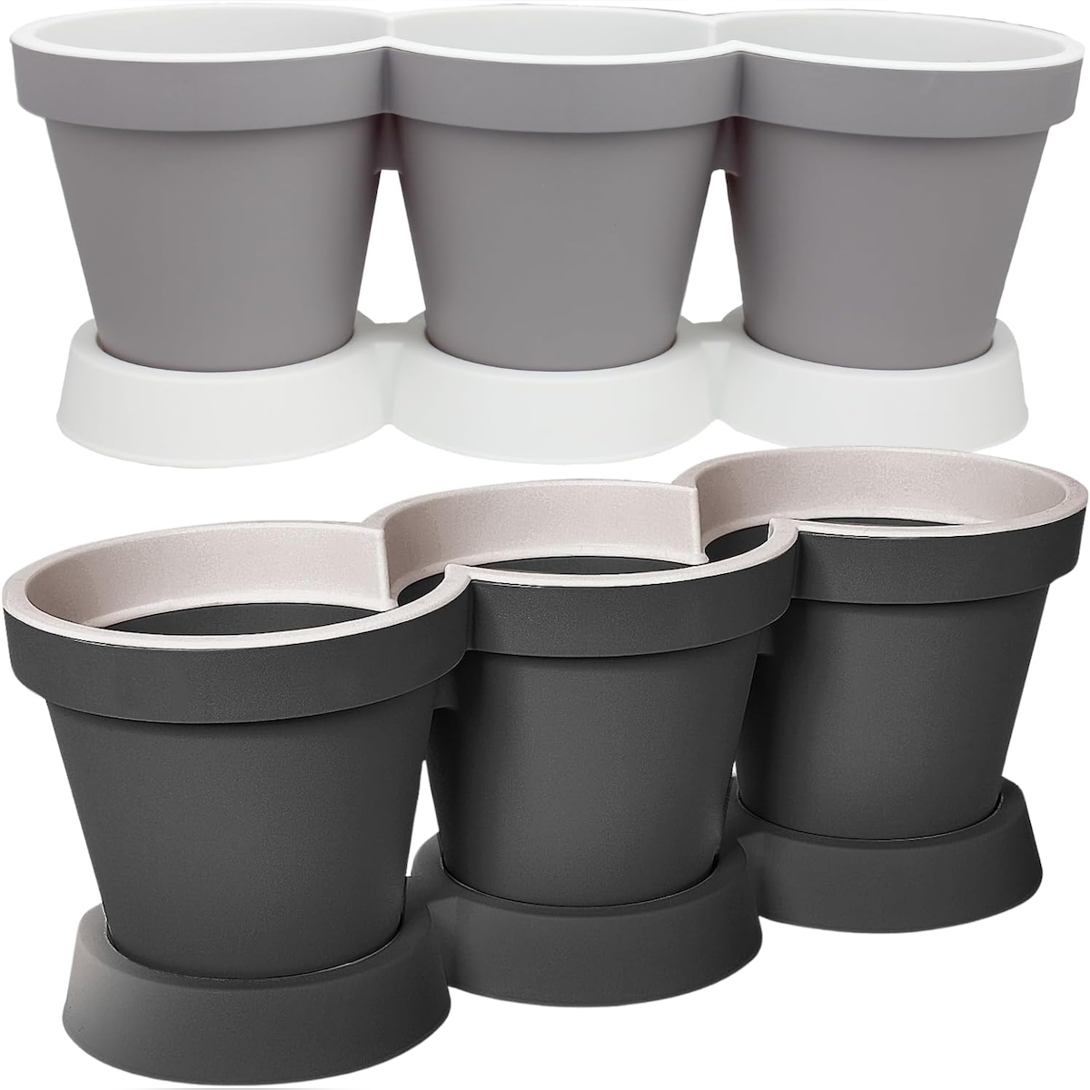 Kräutertopf-Set HERBANA – 2er Set – mit Untersetzer Anthrazit & Sand