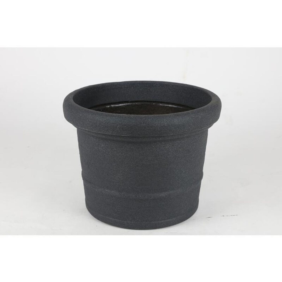 Relaxdays Blumentopf, 2er Set, Pflanztopf mit Untersetzer, Rillen, HxD: 20 x 20 cm, Kräutertopf, Kunststoff, dunkelgrau