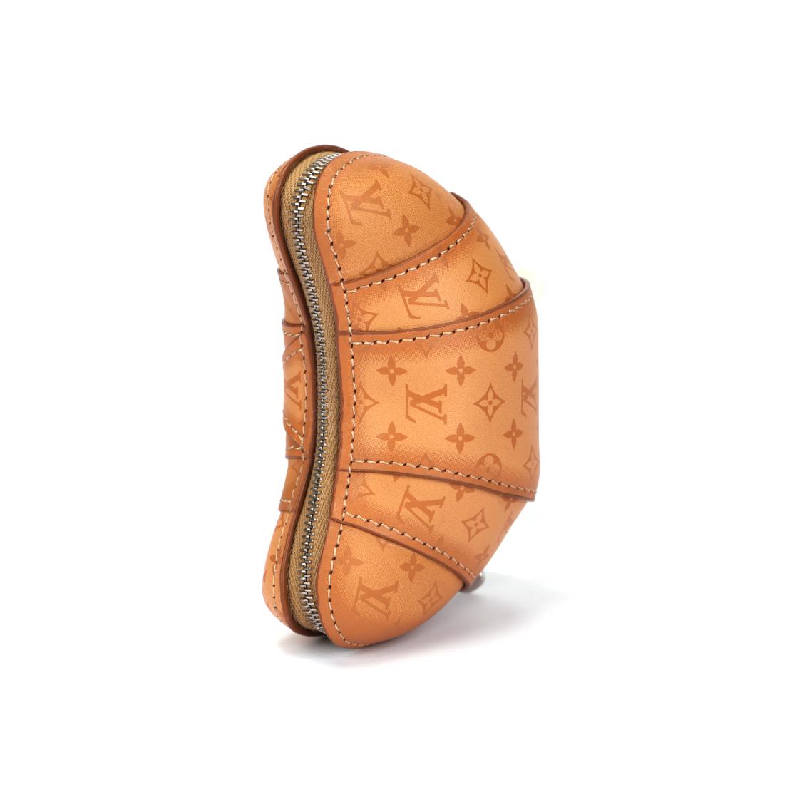Porte-monnaie LOUIS VUITTON CROISSANT en Cuir avec Impression Monogramme Unisexe Style Couple Marron-Jaune marron