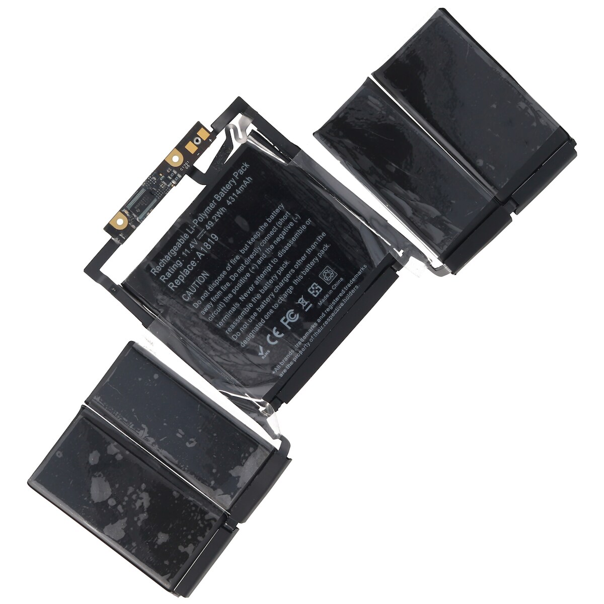 AccuCell Akku passend für Apple Macbook Pro 13" A1706 Retina 2016 Akku A1819, ca. 226x105x5mm