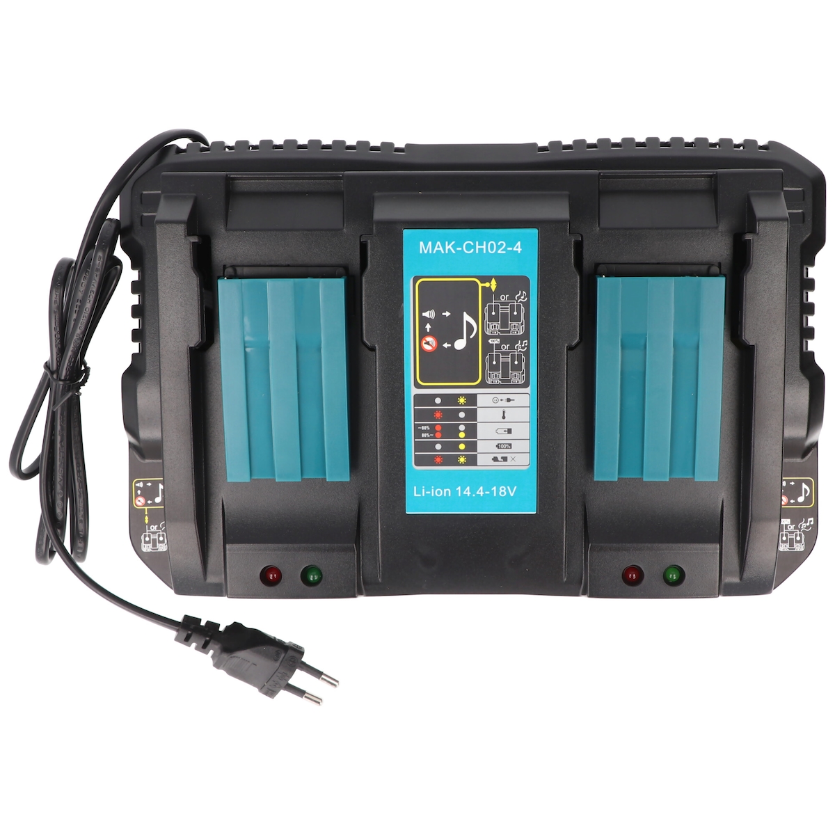 AccuCell 2fach Ladegerät passend für 1 bis 2 Makita Li-ion Akku, kein original Makita Akku