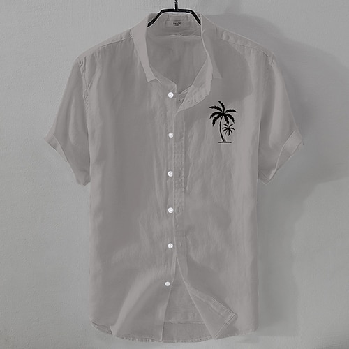 Per uomo Camicia di lino Camicia minimalista Aloha Camicia casual Camicia in cotone e lino Camicia con Bottoni Albero di Cocco Vacanza Streetwear Nero Bianco Rosa Blu marino scuro Manica Corta Bavero