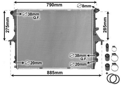 VAN WEZEL Kühler, Motorkühlung 58002214 mit Zubehör für VW AUDI PORSCHE VAG 7L0121253K 9551064201