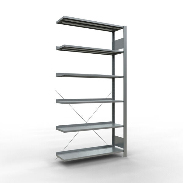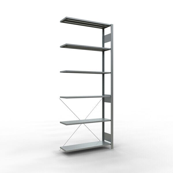 SCHULTE Lagertechnik Anbauregal, Büro-Fachbodenregal Stecksystem MULTIplus85, 2000 x 1000 x 300 mm (HxBxT), 6 Fachböden, Kreuzstrebe, verzinkt, mit Anschlagleiste